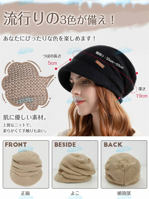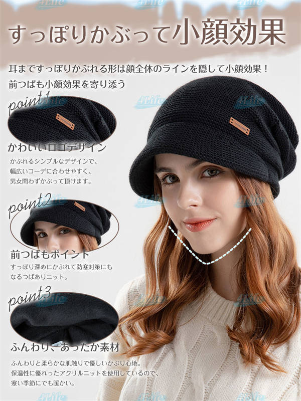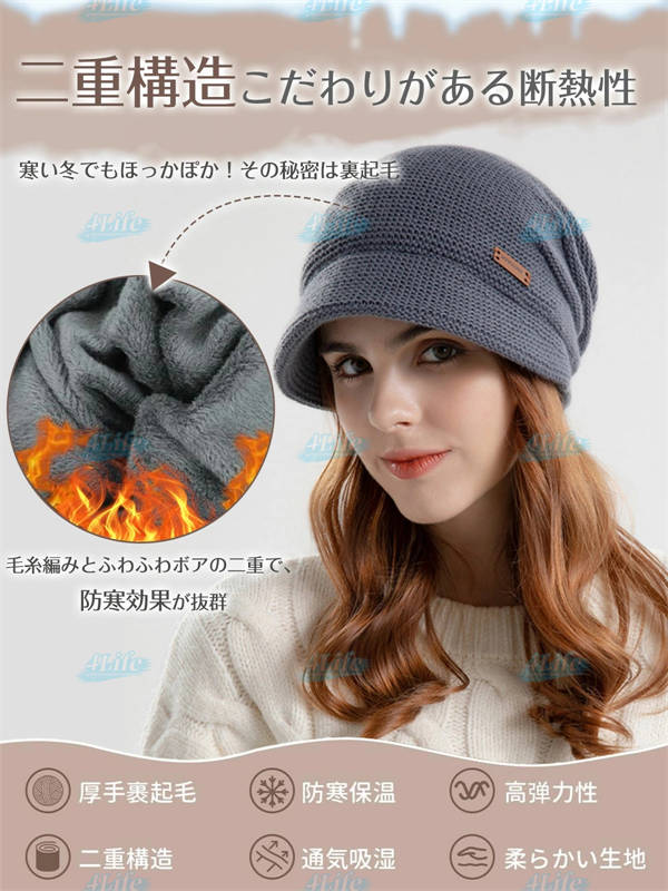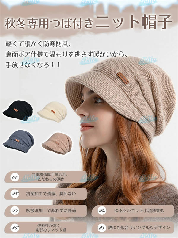 帽子 レディース帽子 レディース ニット帽 キャスケット 男女兼用 ニットキャップ あったか つば付きニット帽子 暖かい 秋冬 裏起毛 二重保温 肌に優しい 防寒防風 柔らかい 締め付け感ゼロ 小顔効果