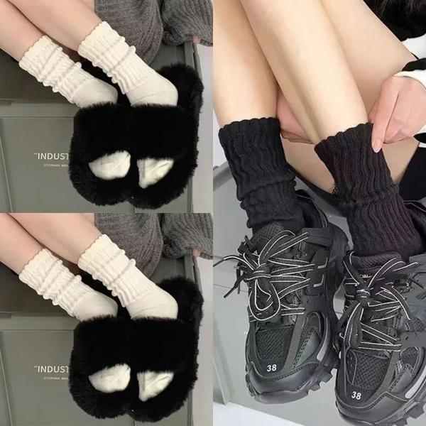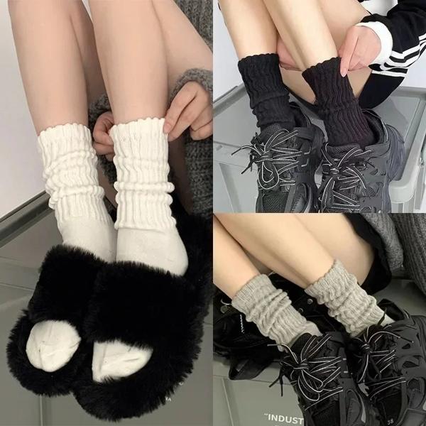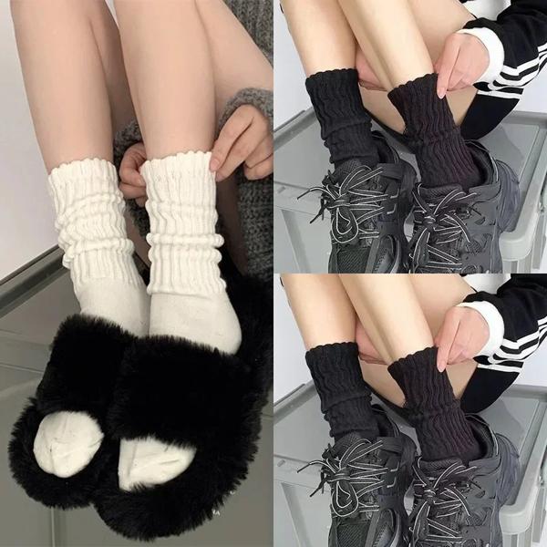 Y2kニットロングソックス女性用,カジュアル,黒,白,かぎ針編み,ミディアムチューブ