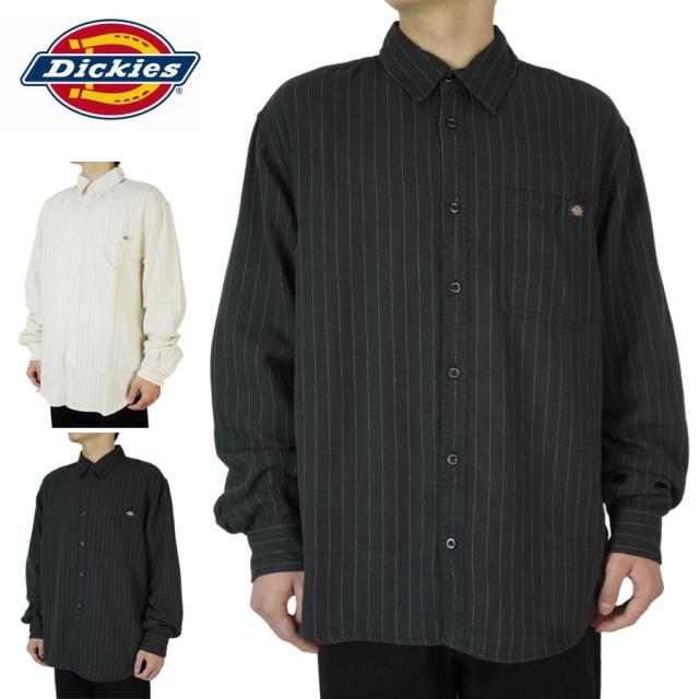 DICKIES ディッキーズメンズ シャツ ワークシャツMENS WOVEN HICKORY STRIPE SHIRT ヒッコリーストライプ シャツEGRET BLACK エグレット ブラック 黒 オフホワイトスケーター TATOO ローライダー 作業着 大きめ