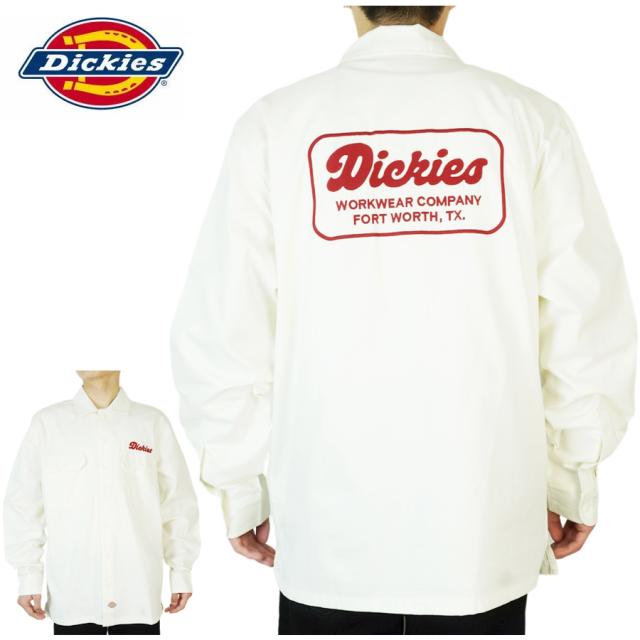 DICKIES ディッキーズメンズ 長袖シャツウーブン ツイル シャツWOVEN TWILL SHIRTWHITE ホワイト レッド 赤 刺繍 チェーンステッチ ワークスケーター TATOO ローライダー 作業着 大きめ