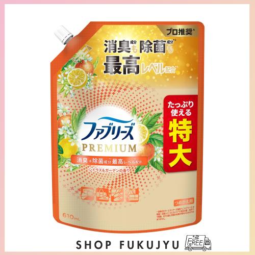 ファブリーズ 消臭スプレー PREMIUM 消臭+除菌成分最高レベル配合 衣類・布製品用消臭剤 シトラス&ガーデンの香り 詰め替え 特大 610mL