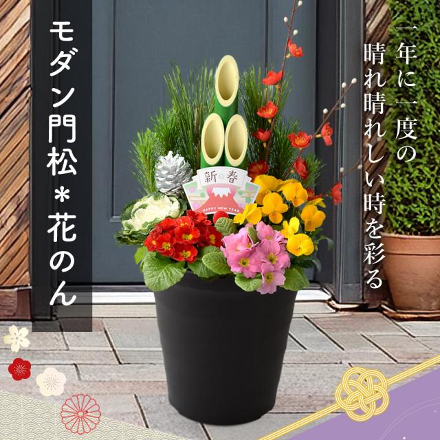 正月 年内お届け 門松 玄関 お正月 迎春 モダン門松 「 花のん ( 単品 )」 正月飾り お正月飾り 玄関用 花 お年賀 ギフト正月 寄せ植え 仕立て 正月花 お正月 お正月後は寄せ植えに変身 迎春 モダン 縁起物 お年賀 ギフト 花飾り おしゃれ 午年 マンション 松 2026 送料無料