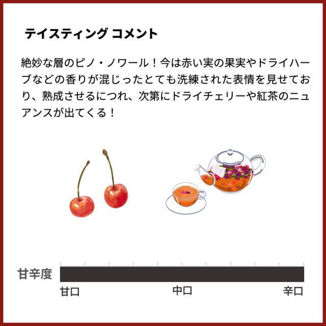 ![]() ■ぶどう品種:ピノ・ノワール100% ■発酵・熟成:フレンチオーク樽の小樽 (フランソワフレール社の新樽100%) で22ヶ月熟成 この2020年でジェブ・ダナック驚異の95点!ヴィノス誌93点!ワインメーカーからのコメントは「このワインは全房と新樽の要素がよく出ています。ノックスのボトリングに最適なロットを特定するため、規則正しい樽選別が行われました。2020年ヴィンテージは収穫量が多かったので、より多くの樽から選ぶことが出来ました。2020年はこのワインのベストヴィンテージのひとつです。その「外向的」な個性は、優れた力強さ、表現力豊かな個性、バランス、複雑性を際立たせています。」と絶賛! 絶妙な層のピノ・ノワール!今は赤い実の果実やドライハーブなどの香りが混じったとても洗練された表情を見せており、熟成させるにつれ、次第にドライチェリーや紅茶のニュアンスが出てくる!このピノ・ノワールは力強く、エレガントで美しさも兼ね備えており、全てのバランスが素晴しい飲む喜びを教えてくれるワイン! ![]() ![]() |