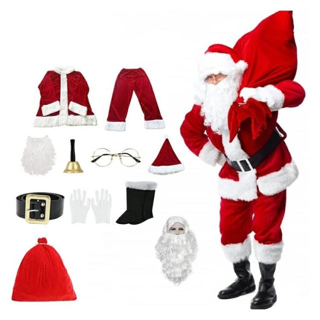 豪華11点セット サンタ コスプレ クリスマス コスプレ サンタクロース 5/7/9点セット 男性用 サンタコス 髭 ヒゲ 袋 大人 メンズ サンタクロース サンタ帽子 コスチューム コスプレ衣装 大きいサイズ サプライズ 面白い おもしろ
