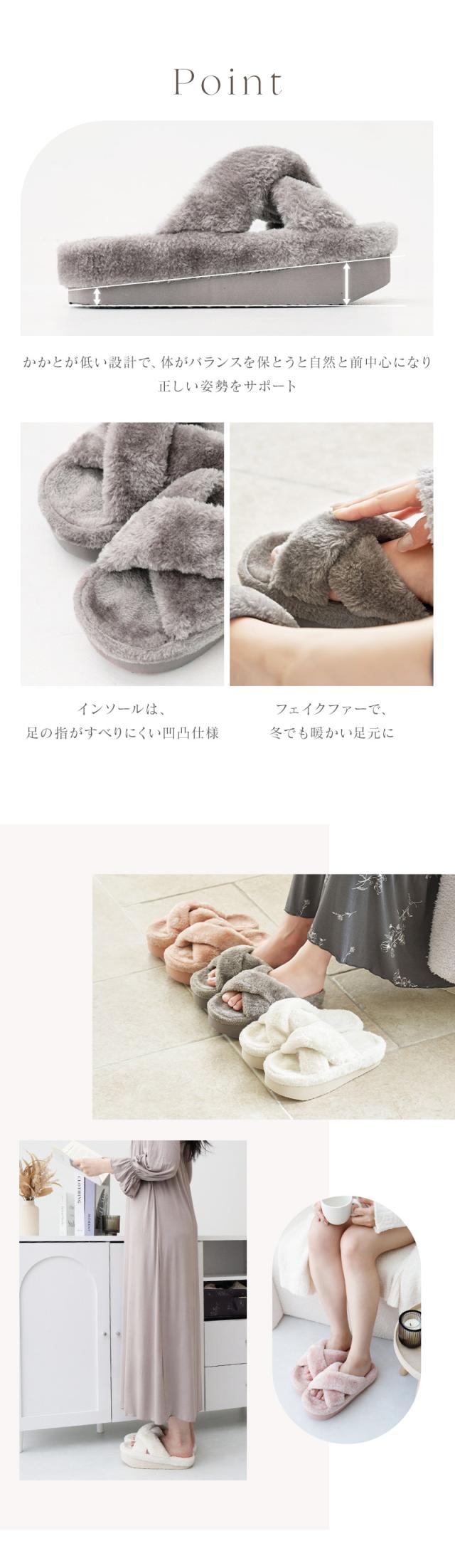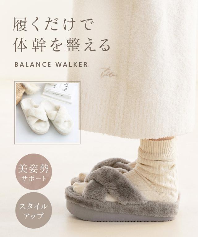 ファー付きバランスウォーカー スリッパ レディース サンダル ママ 美容 健康 おしゃれ 無地 健康サンダル 姿勢 トレーニング【冬新作】