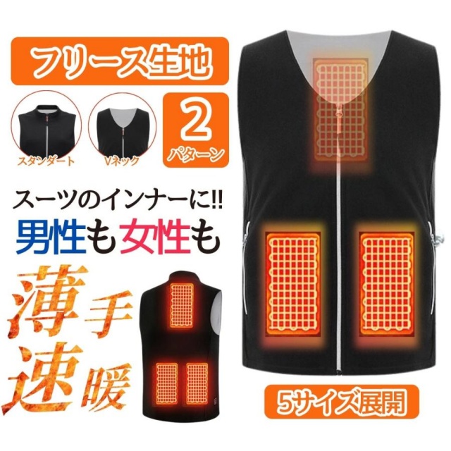 2025 電熱ベスト メンズ レディース 5個ヒーター 大きいサイズ USB式給電 3段階温度 作業着 速暖 水洗い 男女兼用 防寒着 インナー可ア 送料無料