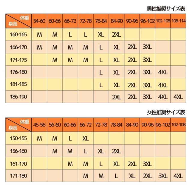 ※がっちり体型なら1から2サイズ上がおすすめです。