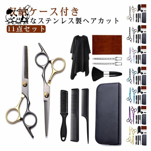 レビュー高評価商品 品質安心 収納ケース付き ヘアカット 散髪 グッズ ハサミ すきバサミ ウィッグはさみ セット 11点セット 今だけ 売上急増中 前髪 スキバサミ はさみ ケープ付き 髪切り 道具 話題商品 美容師 セルフカット セニング くし シザー プロ用 家庭用 対応中