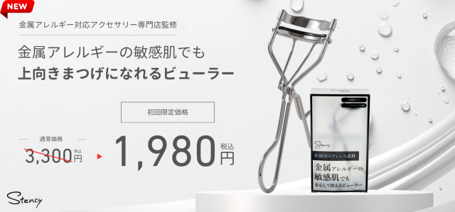 金属アレルギー対応 アイラッシュカーラー eyelash curler ビューラー 一重用 奥二重 たるみまぶた 短いまつげ まつ毛 アイメイク コスメ 目力UP ウォータープルーフ 日本製 敏感肌 安心 316L サージカルステンレス製
