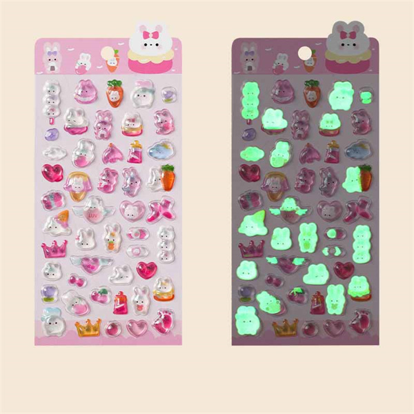2個購入で3個お届け 立体シール 3Dシール 蓄光 実心タイプ ご褒美シール 可愛い 3D スマホケース DIY 手作り 手帳 ステッカー アルバム デコシール 日記帳 手芸用