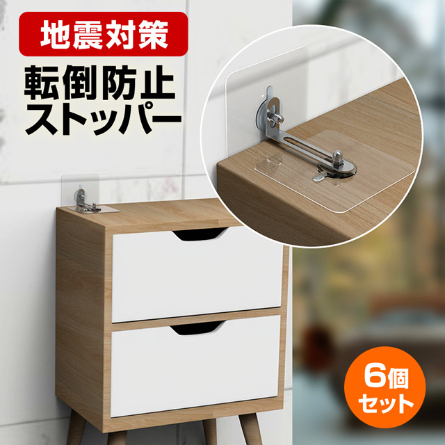 【クーポン配布中】「即納」【6個セット】L型 転倒防止グッズ ストッパー 家具固定粘着シート 地震対策 耐震 転倒防止 固定金具 コーナーラック テレビラック タンス テーブル 本棚など対応 防災関連グッズ 壁面固定器具 家具転倒防止用品 防災グッズ
