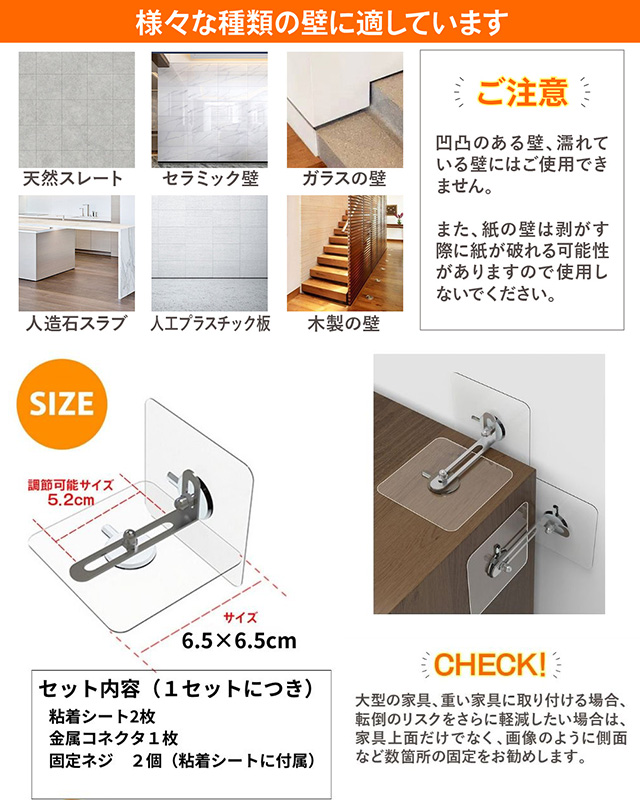【適用範囲】ガラス面、タイル面、木製面、大理石面など、滑らかな硬い面に適しています。学校、教室、会議室、バスルーム、居間、オフィス、図書館、大学、寮などの場合に適用します。例えば、本棚 スリム、コーナーラック、タンス、突っ張りラック、脚立、たんす、テレビラック、食器棚や収納棚などです。