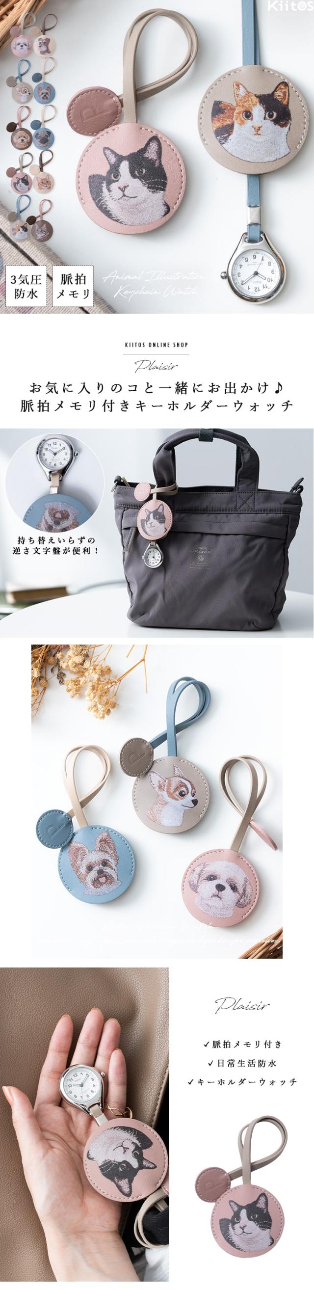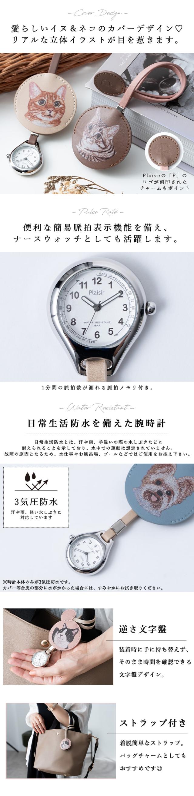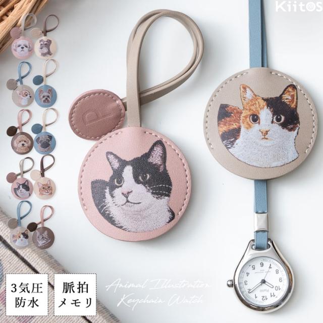 懐中時計 レディース ストラップ ウォッチ 3気圧防水 ナースウォッチ 簡易脈拍メモリ付き アニマル 動物 ネコ イヌ かわいい おしゃれ キーホルダーウォッチ チャーム 大人 通勤 通学 見やすい 20代 30代 40代 50代 日本製ムーブメント ギフト 1年間のメーカー保証付き
