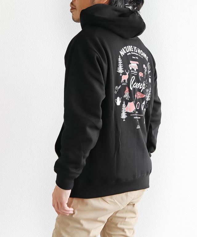 バックにはアウトドアをモチーフにしたプリントデザインで、前後でのデザイン対比が映える仕上がりです。