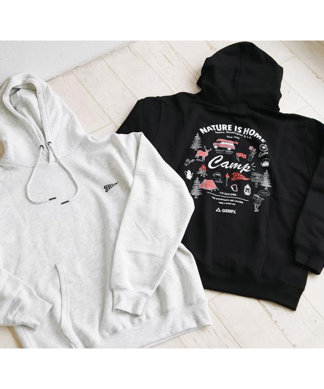 gerry パーカー メンズ ブランド フーディー レディース 長袖 ロゴ 裏起毛 刺繍 プリント フーデットパーカー フーデッドスウェットシャツ スウェット 秋 冬 カジュアル おしゃれ ストリート アウトドア 大人 旅行 アメカジ ファッション 黒 ブラック グレージェリー