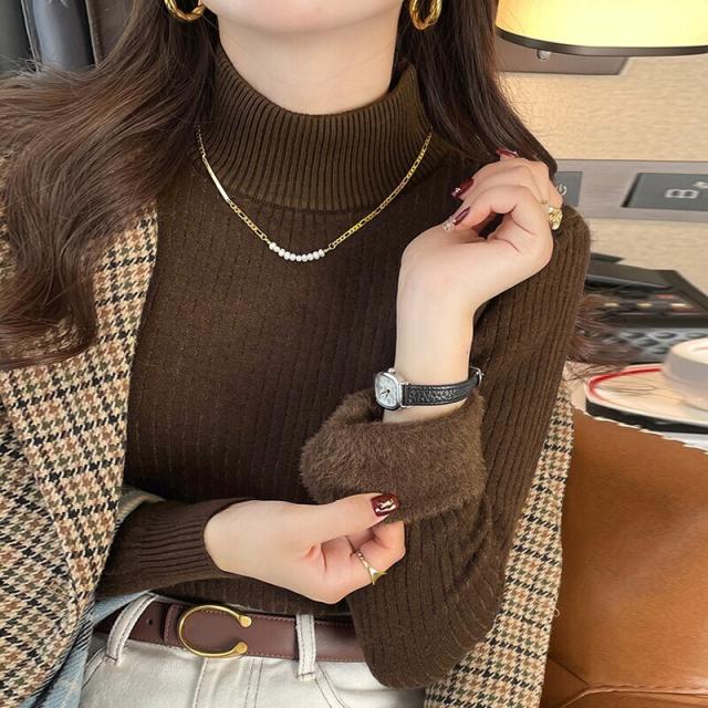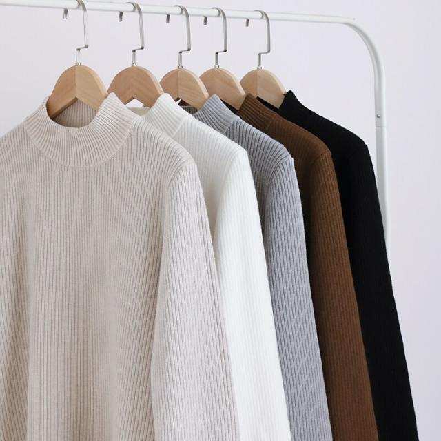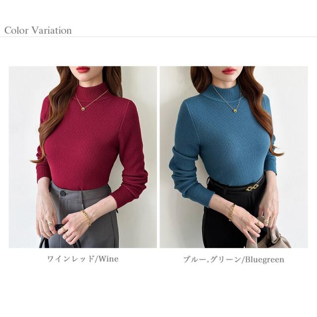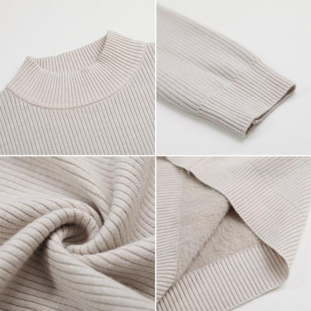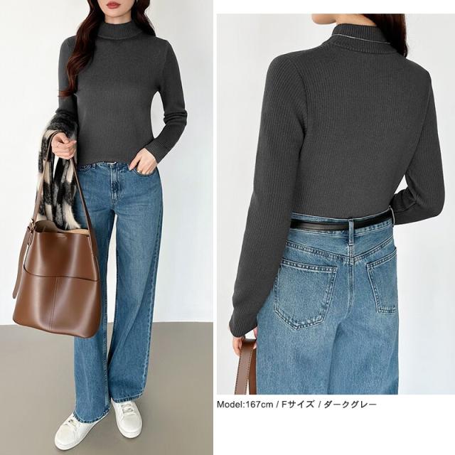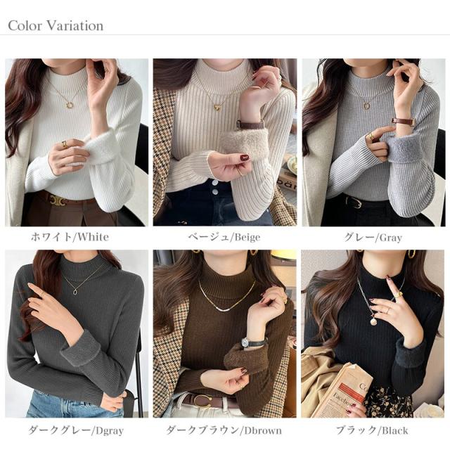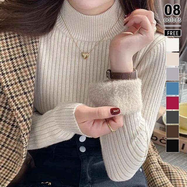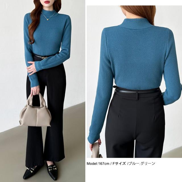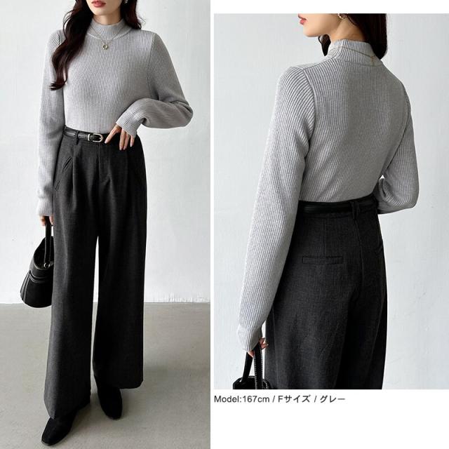 裏起毛ふわもちニット ハイネックリブニット 裏起毛ニット ハイネック リブニット トップス