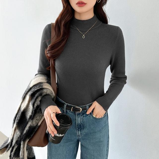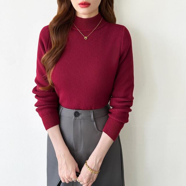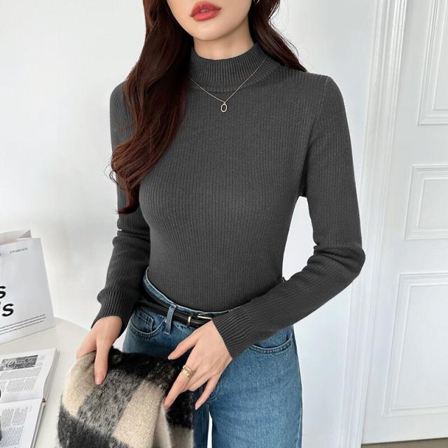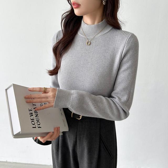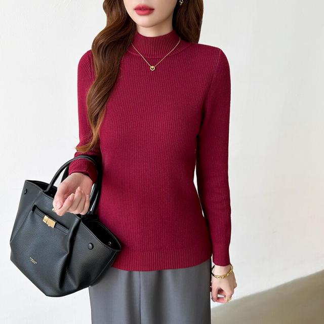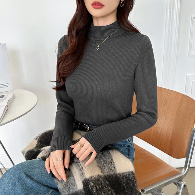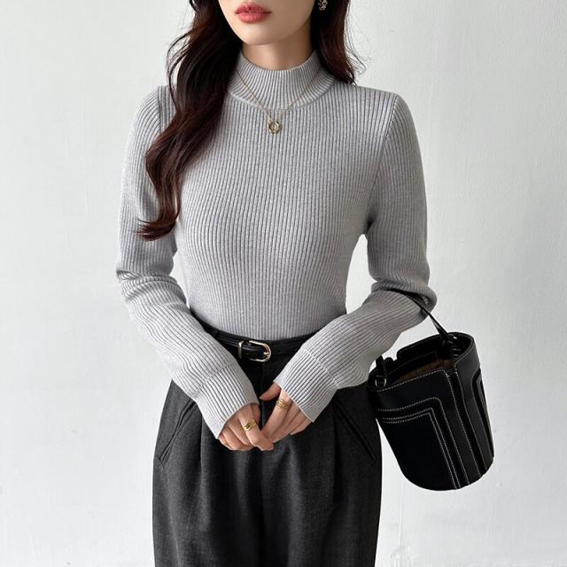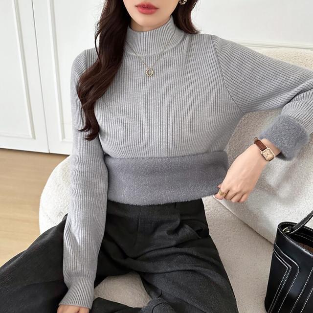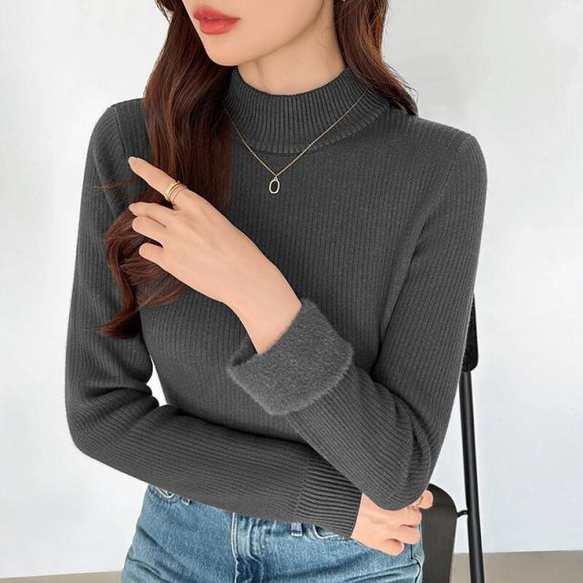 裏起毛ふわもちニット ハイネックリブニット 裏起毛ニット ハイネック リブニット トップス