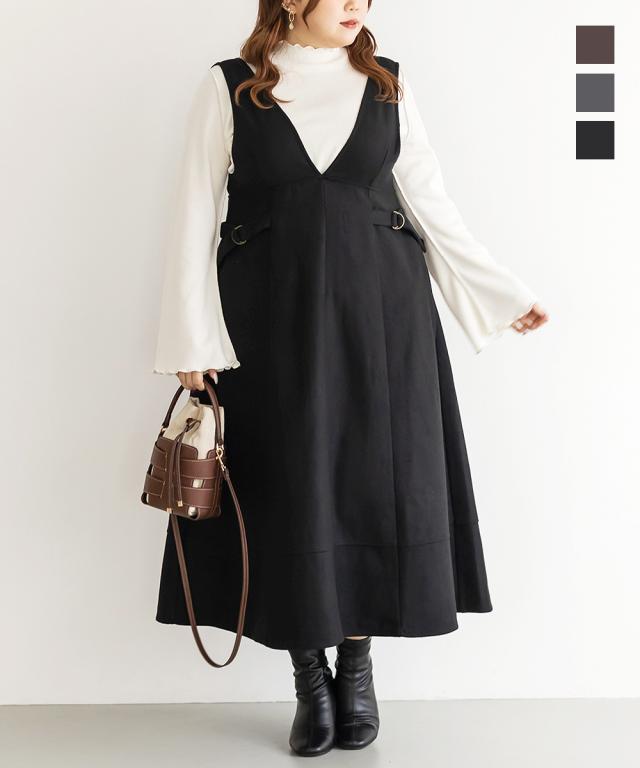 大きいサイズ/レディース/LL/3L/4L/CLETTEオリジナルサイドベルトジャンスカワンピース