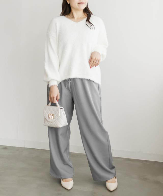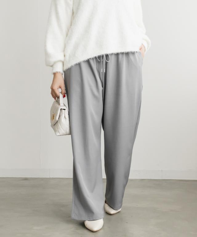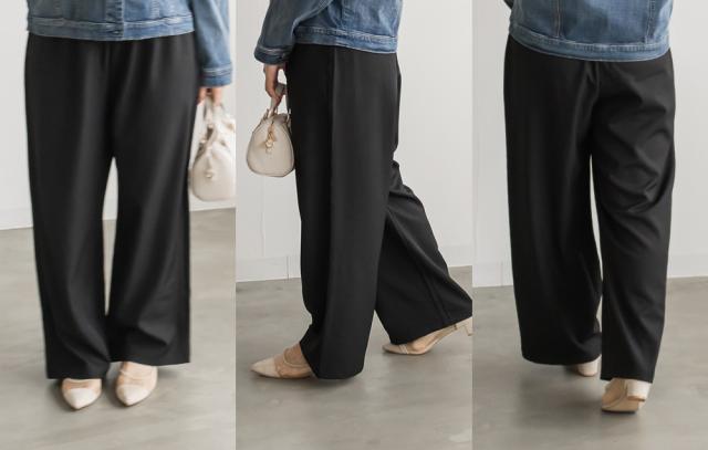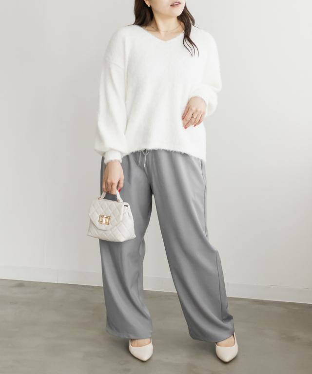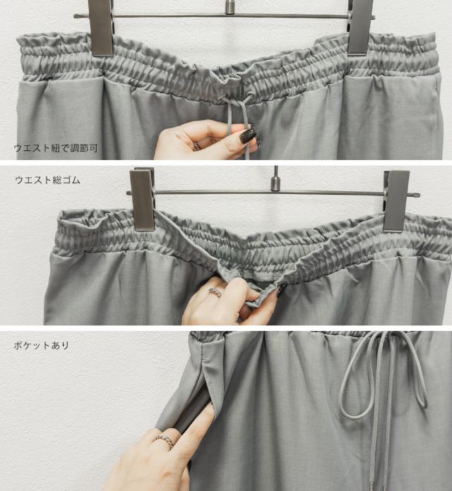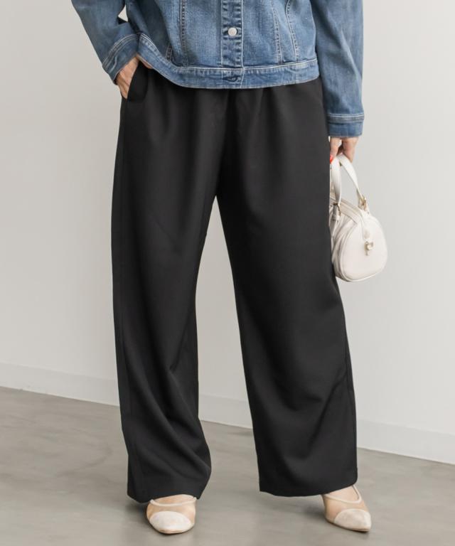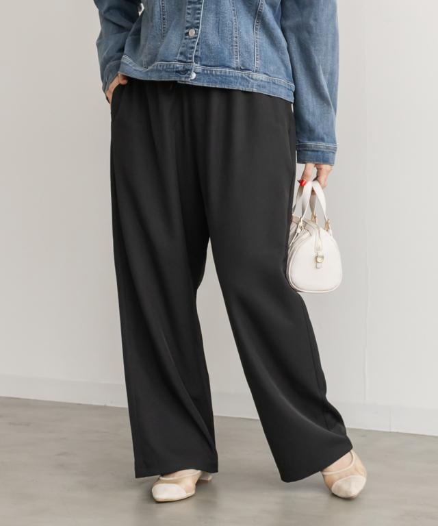 | 3Lサイズを着用して程よくゆとりのあるサイズ感でした。いつも通りのサイズ選びで問題なさそうです◎ウエストは紐がついていて調節可能なので幅広くお使いいただけます♪ゆとりがありつつすっきり見えるシルエットで、楽ちんな着心地です!コーデ次第でフェミニンなスタイルにもなれるアイテムで、可愛い系のトップスとも、シンプルなトップスとも相性がいいのでおすすめです。お仕事にもつかえるキレイめな雰囲気で、オールシーズン使える便利な1枚です! |