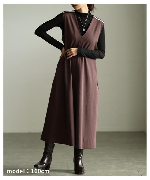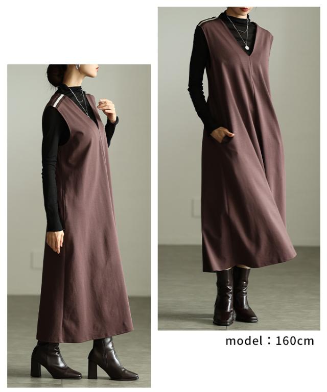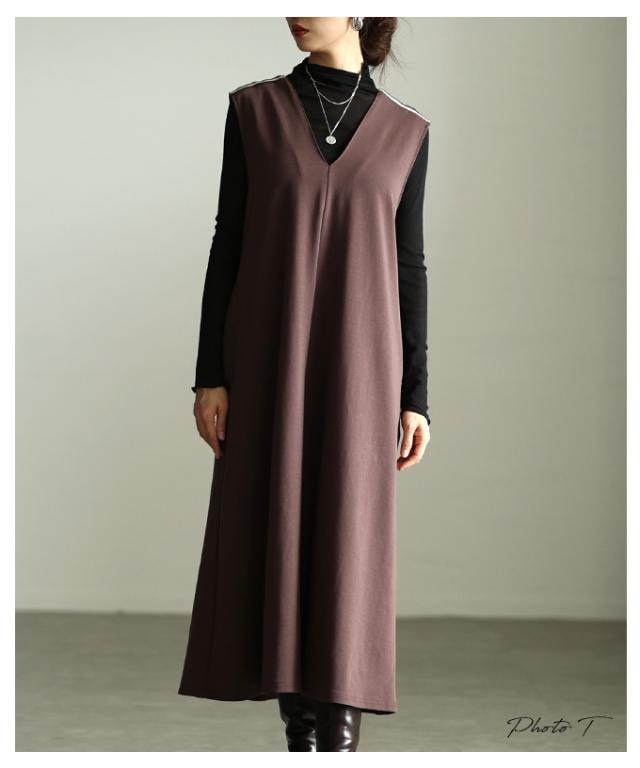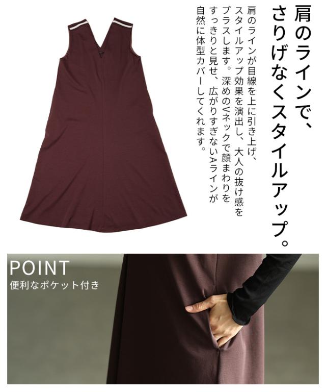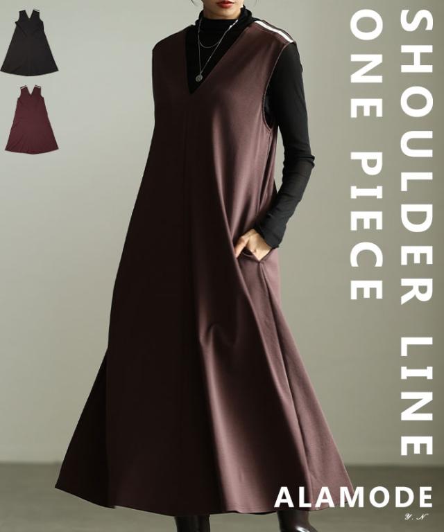 春新作 ラインで魅せるショルダーラインVネックワンピース レディース ワンピース ロング Vネック シンプル ノースリーブ 春 秋 冬 春服 秋服 冬服 カジュアル 30代 40代 50代 60代 アラモード alamode otona 大人 cawaii 可愛い 洋服 かわいい服 alzmp-150721