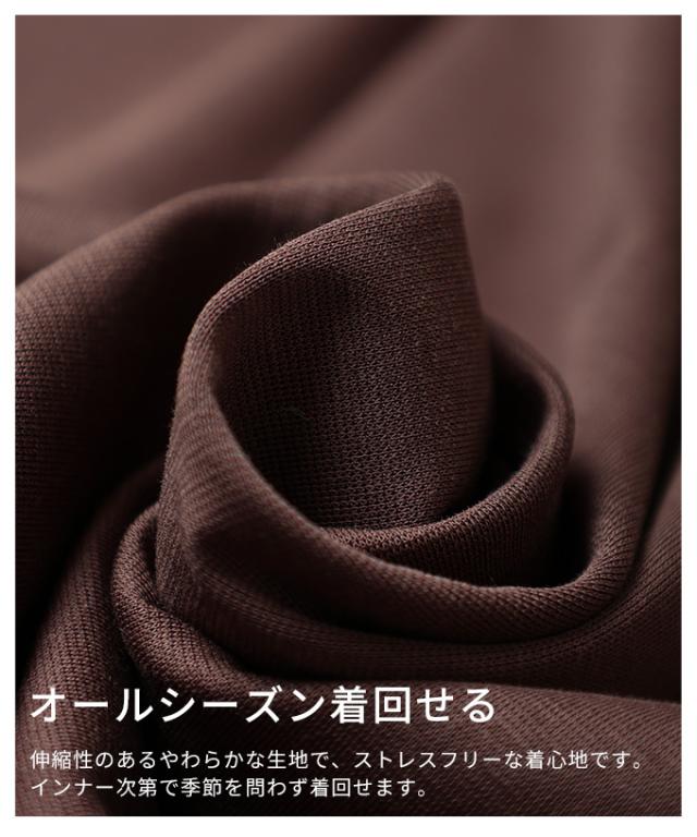 着丈は足首くらいです。脇ぐりは広くVネックとラインですっきりして見えます。広がりすぎないAラインのシルエットで体形を拾わず楽に着用できました。肩のリブラインがポイントになってます。伸縮性のある滑らかなやわらかい生地で肌触り良かったです。
