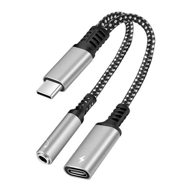 【送料無料】イヤホン変換アダプタ USB-C 1 TO 2 オーディオポート 3.5mm / USB-C 充電ポート オスメス スプリッター タイプC PD60W イヤホンジャック 音楽を聴きながら充電