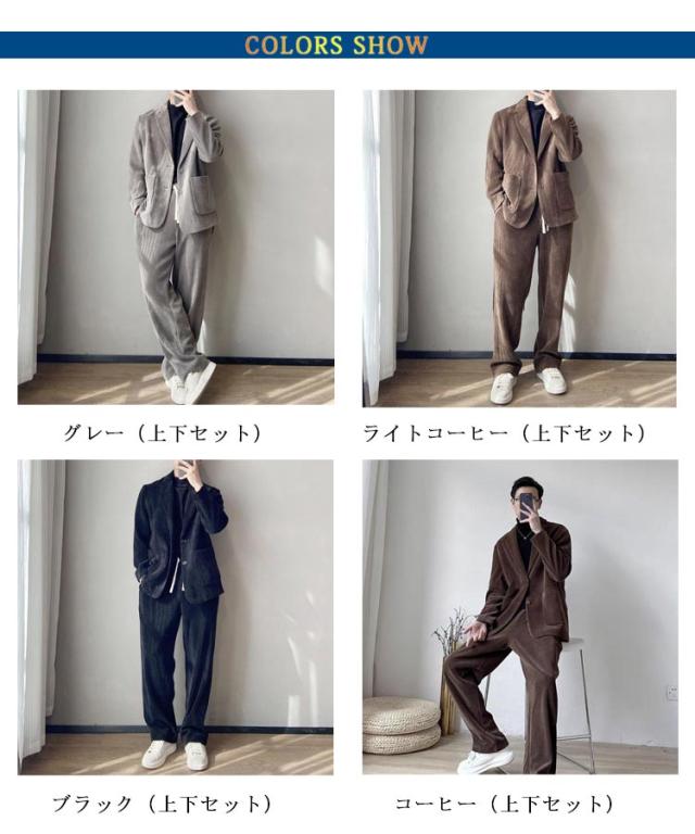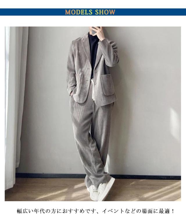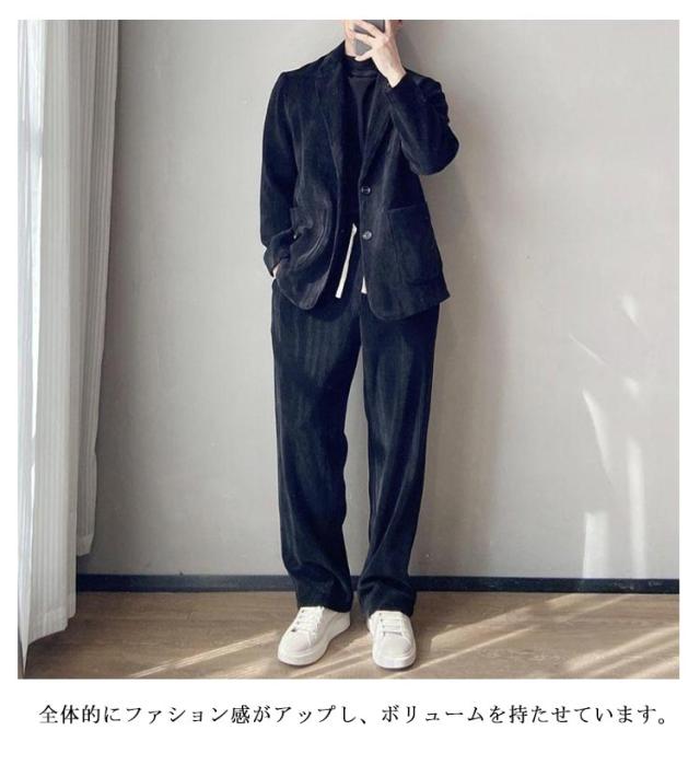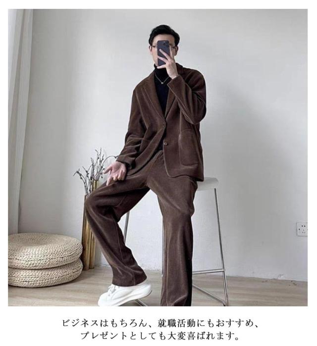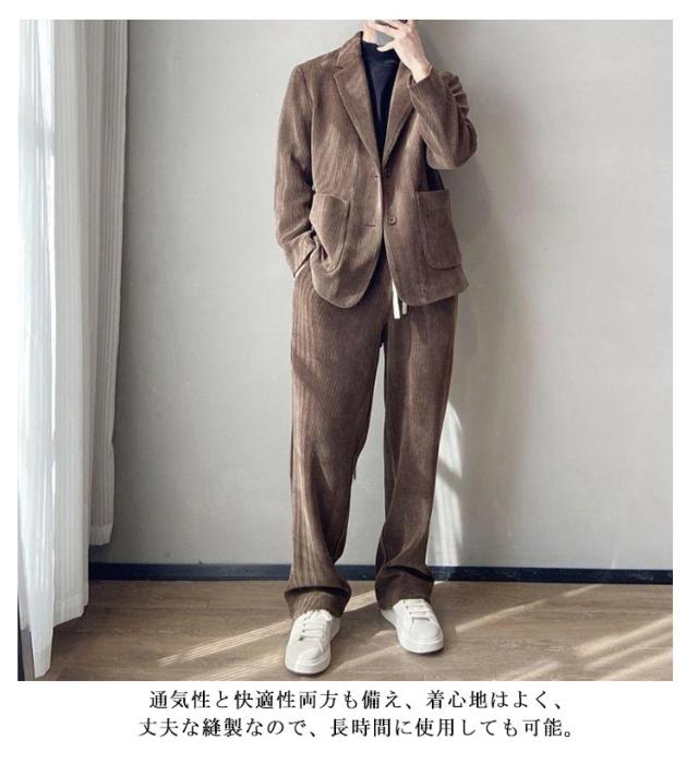 | テーラードジャケット+ロングパンツ コーデュロイ2点セットアップ。幅広い年代の方におすすめです、イベントなどの場面に最適! 通気性と快適性両方も備え、着心地はよく、丈夫な縫製なので、長時間に使用しても可能。 全体的にファション感がアップし、ボリュームを持たせています。 ビジネスはもちろん、就職活動にもおすすめ、プレゼントとしても大変喜ばれます。 | |