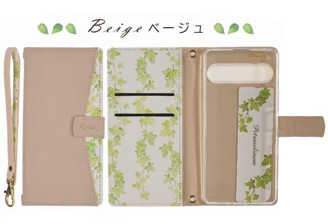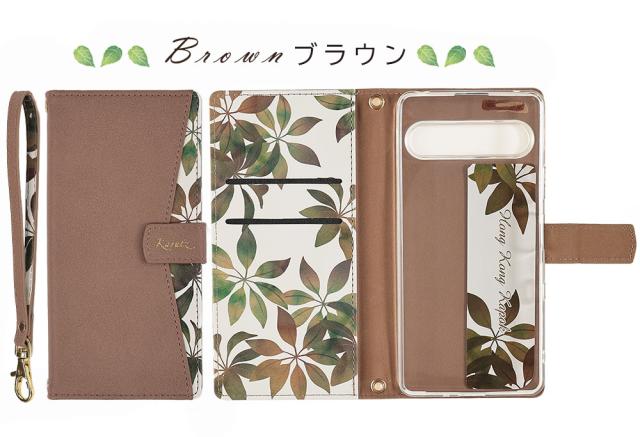 ●植物の葉っぱデザインがお洒落な手帳型ケース