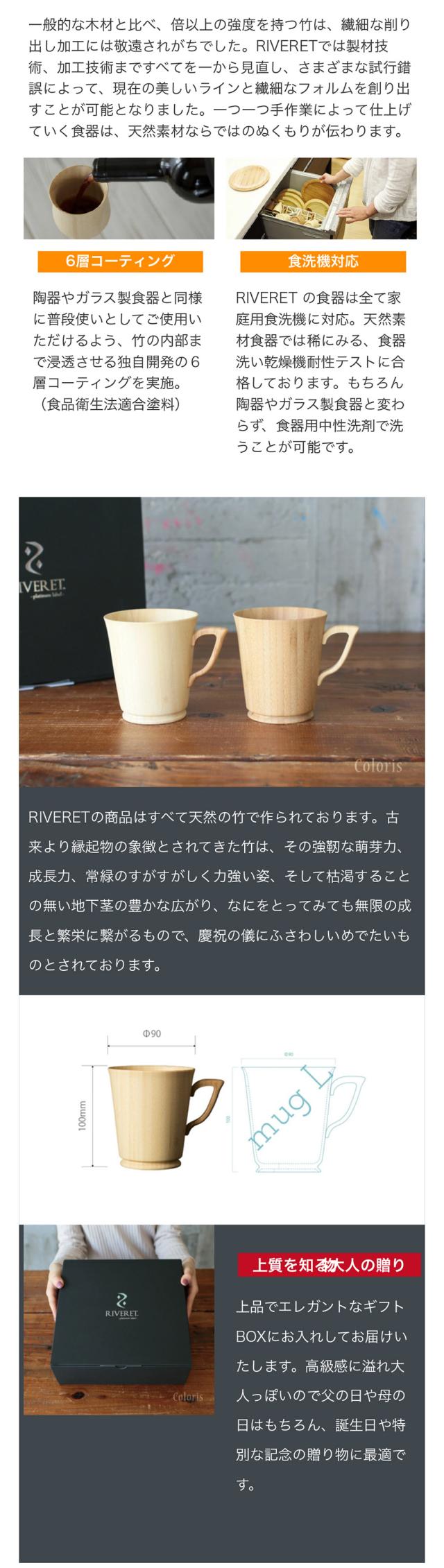 RIVERET 竹製 マグカップL/L ペアセット 日本製 リヴェレット ブランド 高級 軽い ナチュラル おしゃれ お餞別 結婚祝い