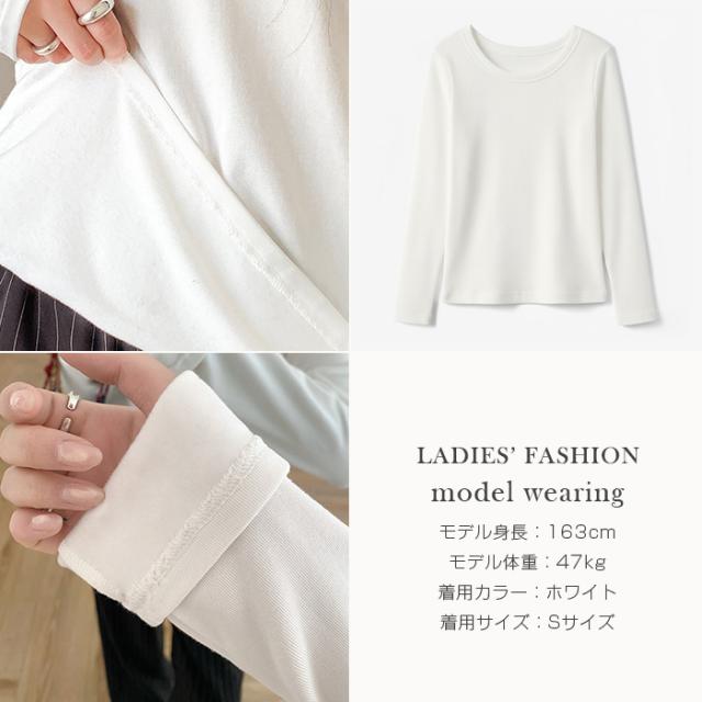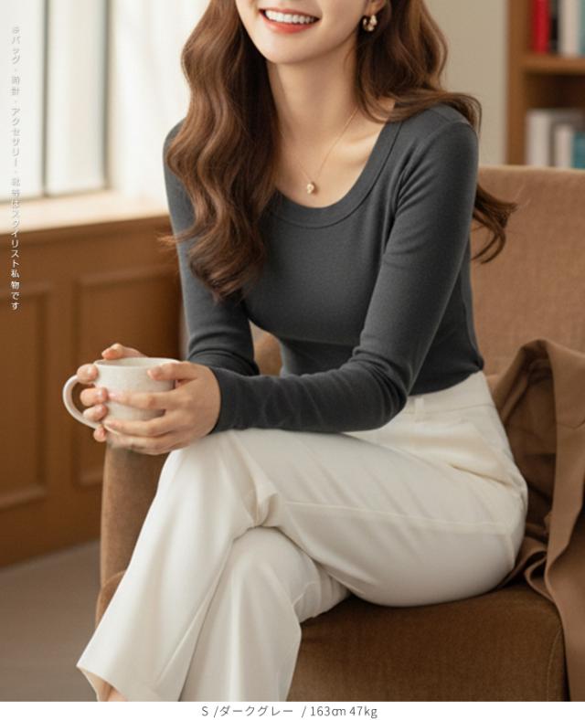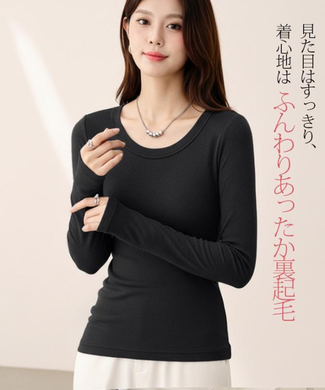 MAX1,500円OFFクーポン!裏起毛 Uネック tシャツ 深め ラウンドネック レディース 長袖 カジュアル ロンT カットソー 秋冬 冬 きれいめ ルームウエア オシャレ 無地 女性用 レーヨン 【 Uネック裏起毛リブカットソー 】 ダークエンジェル ●即納●