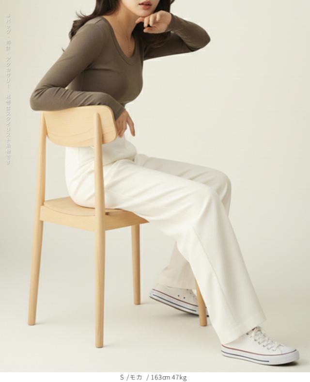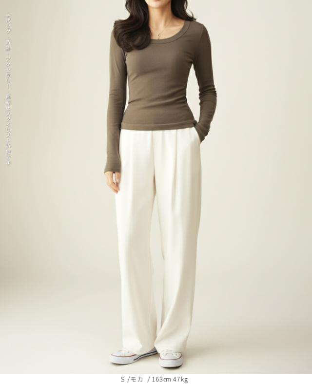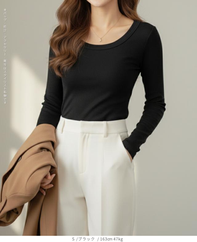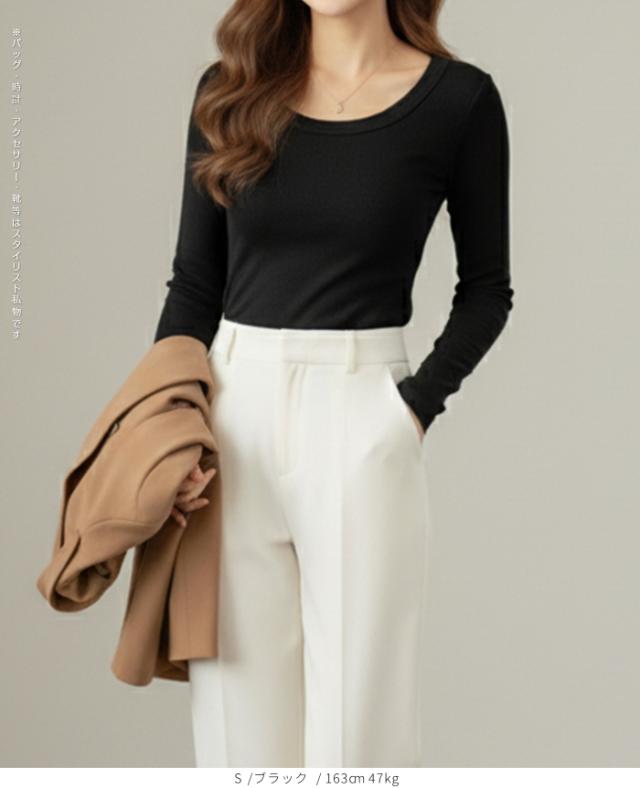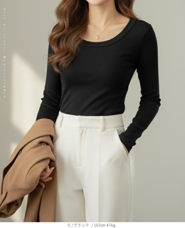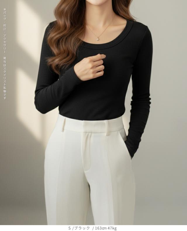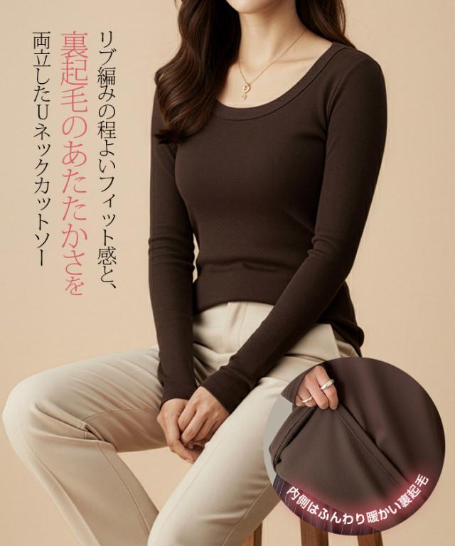 リブ編みの程よいフィット感と、裏起毛のあたたかさを両立したUネックカットソー。