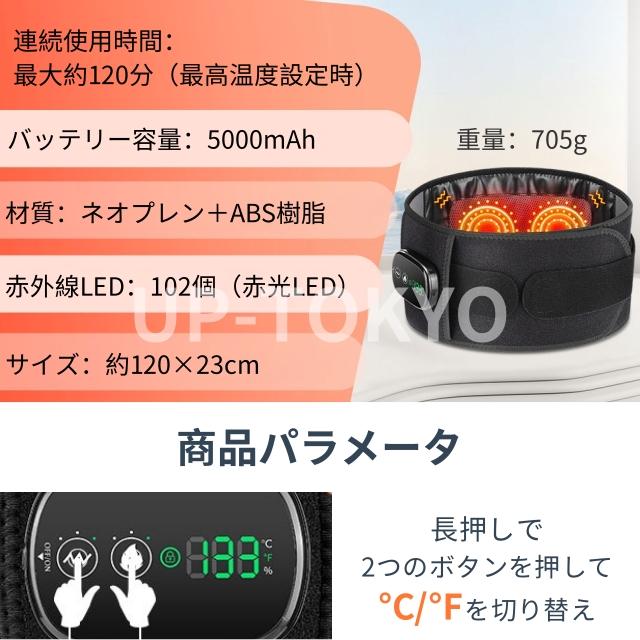 102個の赤外線LEDを内蔵し、遠赤外線加熱で腰をしっかり温め、