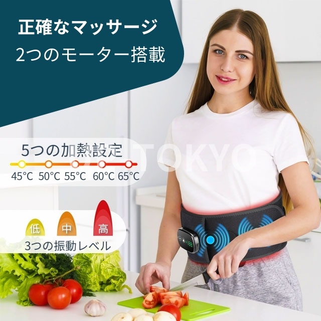 3段階の振動マッサージモードで、腰まわりを効果的にほぐし、リラックス効果抜群。