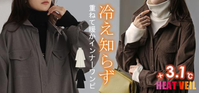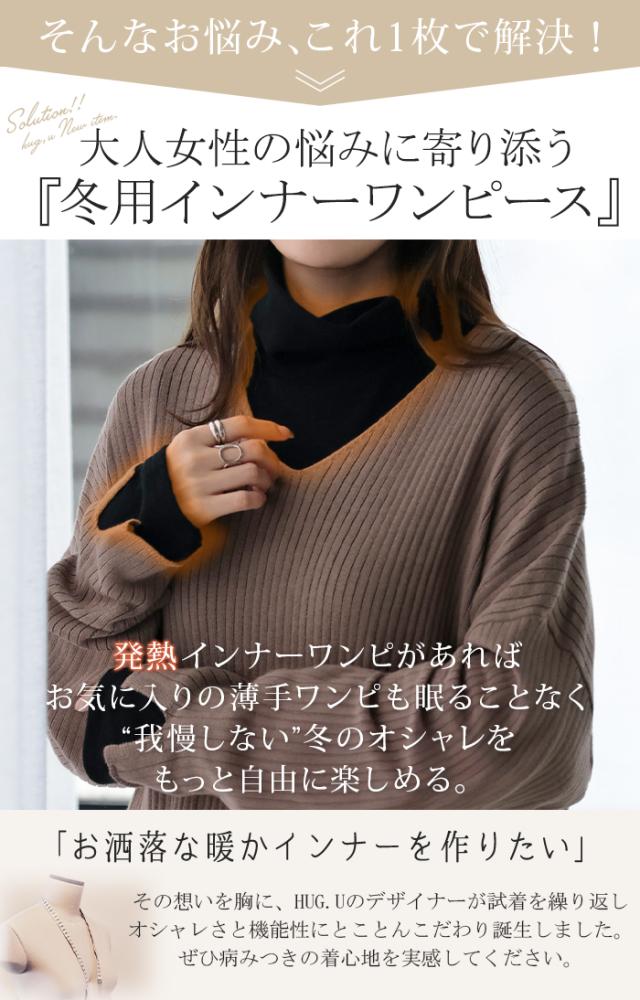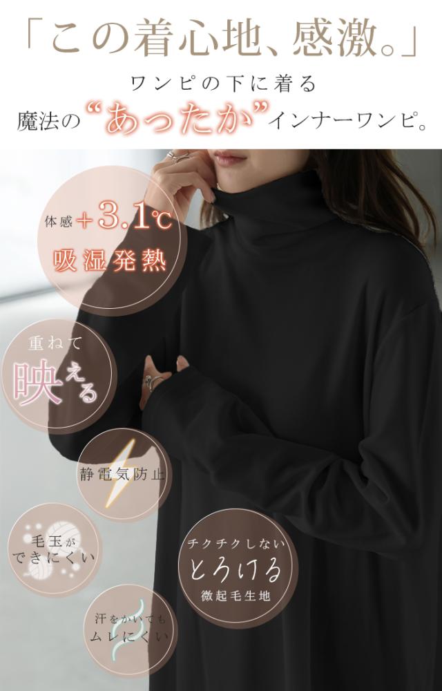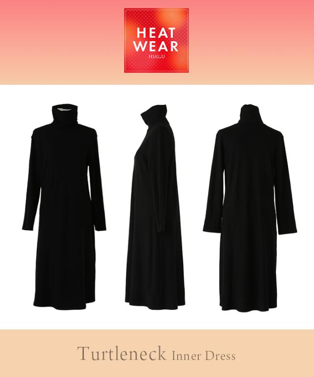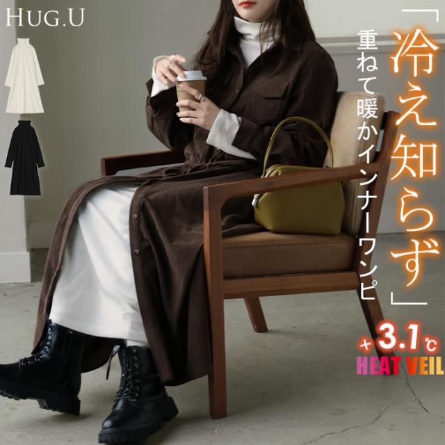 2025AW新作 ワンピース『体感+3.1℃』 インナー 吸湿 発熱 レディース ワンピ ロング レイヤード 微起毛 タートルネック ロングワンピ あったかインナー ヒートインナー ストレッチ 体型カバー 大きいサイズ ゆったり お尻隠れる 黒 白 秋 冬 HUG.U