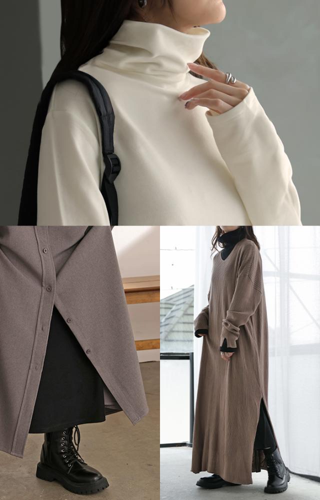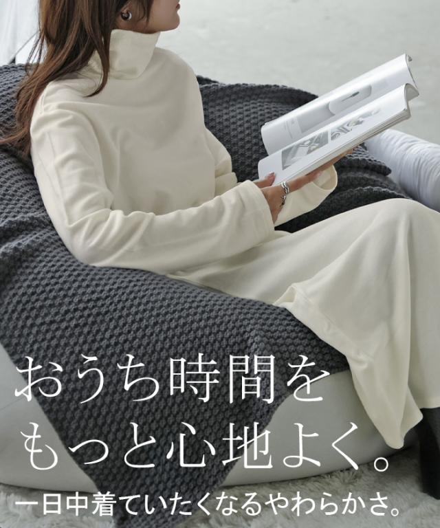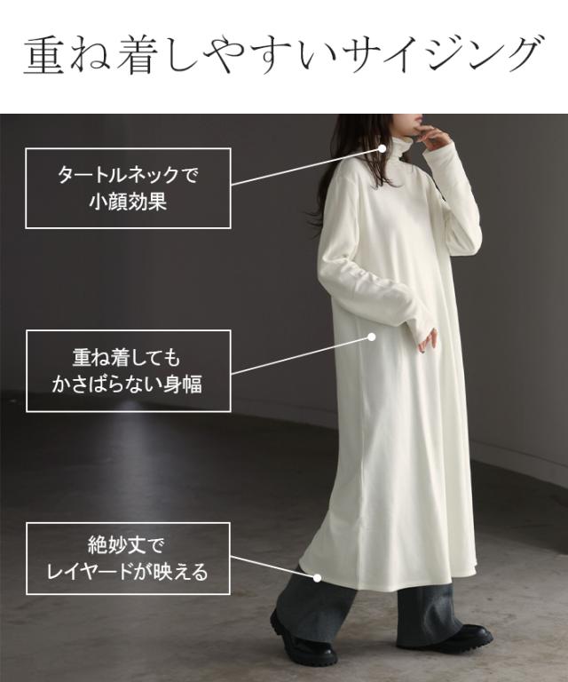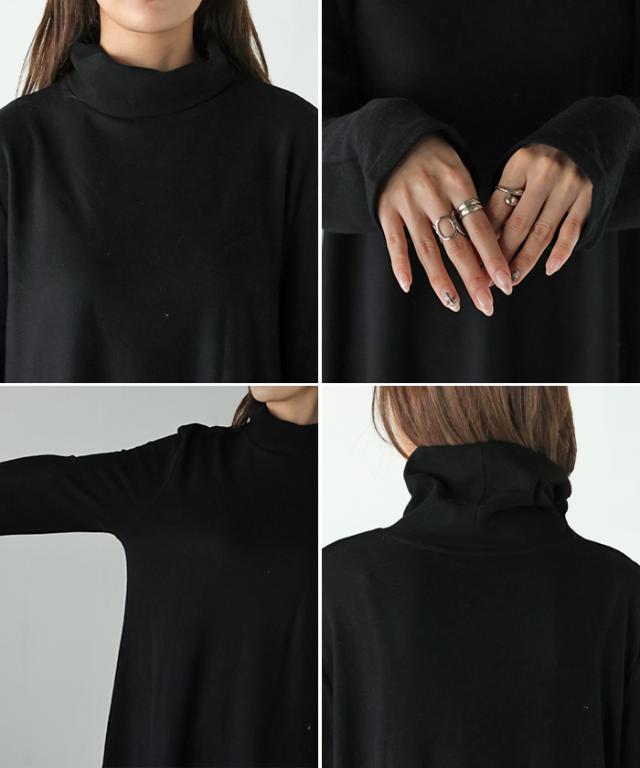 吸湿発熱素材で軽やかに暖かく着られるタートルワンピースです。
