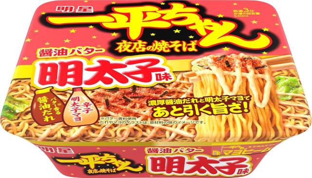 明星 一平ちゃん夜店の焼そば 醤油バター明太子味[明太子マヨ付き、濃い味、オニオンねり込み麺]127g×12個