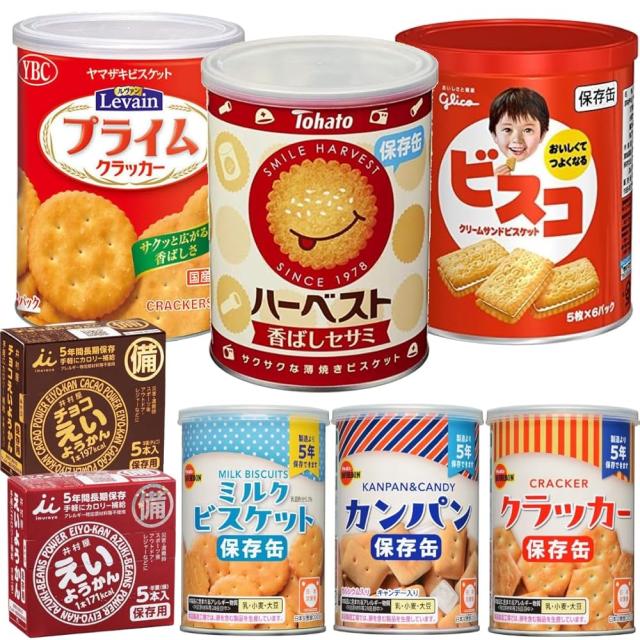セット内容:ハーベスト・ルヴァンS・ビスコ・ビスケット・キャンディー入りカンパン・クラッカー・えいようかん・チョコえいようかん