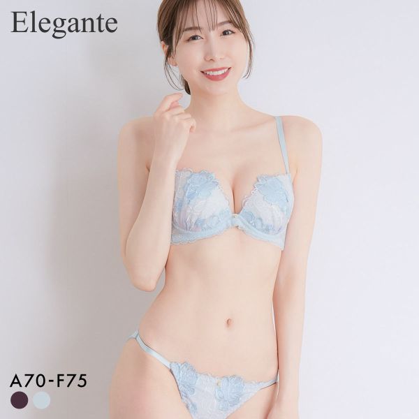 エレガント ロージー刺繍 ブラセット ABCDEF グラマー アンダー大きいサイズ 脇肉 谷間 美胸 L字 谷間 盛り胸 パッド内蔵 Elegante