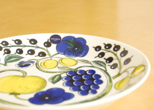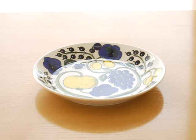 シンプルなフォルムに、パンジーやカシス、ぶどう、りんごなどの瑞々しい花やフルーツのモチーフが華やかに描かれたARABIA(アラビア)パラティッシ。 1969年から作られているアラビアのクラシックシリーズとして、時代を超えて今もなお愛され続けています。 フィンランド陶芸界で最も知られる人物のひとりであるビルガー・カイピアイネンによる名作。 ブルー&イエローのカラータイプは初期のデザイン。 パラティッシはフィンランド語で"楽園"を意味します。