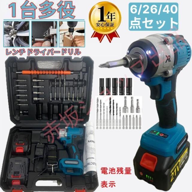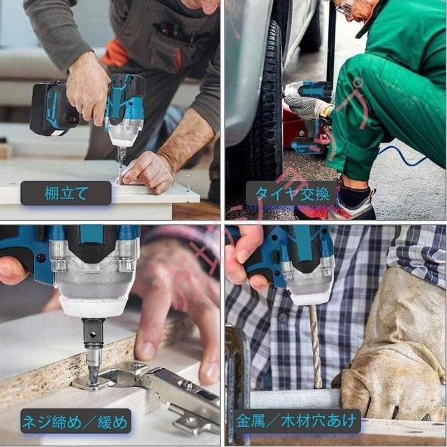【一台多役】ドライバーアダプターとアクセサリーが付属ため、自動車の修理、タイヤ交換用のインパクトレンチだけではなく、ドリルドライバー とインパクトドライバーとして使えます。ホームメンテナンス、およびナットの締め付けとボルトの緩みに最適です。