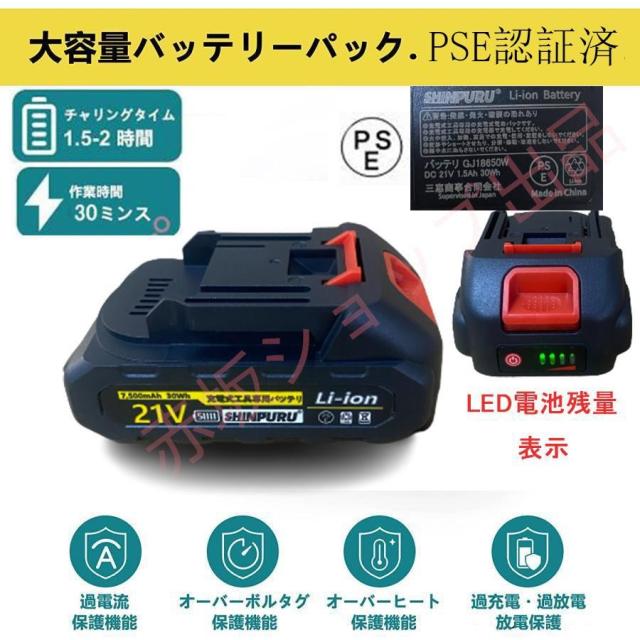 - 本体は特に問題ないが、 21Vバッテリー付き。18Vバッテリー併用 とPRされてますが付属されたバッテリーは満充電での電圧は18Vです。21Vじゃないの? 本体、バッテリー共に型番、電圧、電池容量、電池の種類などの表示が一切無いのは、あまりにも不親切ではないか?