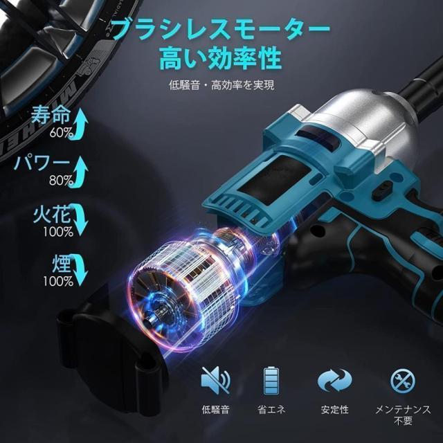 【高耐久・無段階変速 正の反転 連続モードと間隔モードブラシレスモーター+トルク350Nm---最大トルク550N.m】ブラシレスモーターを採用しますので、モーターから火花が出なく、耐久性があります。火花による安全上の問題を心配する必要はありません。この電動インパクトレンチがあると時間短縮、作業効率アップになって、疲労度が減り、予想以上に作業が捗り、整備士にとっては必需品です。さらに、過電流保護、過電圧保護、過熱保護、充電および放電保護により、安全で耐久性があります。