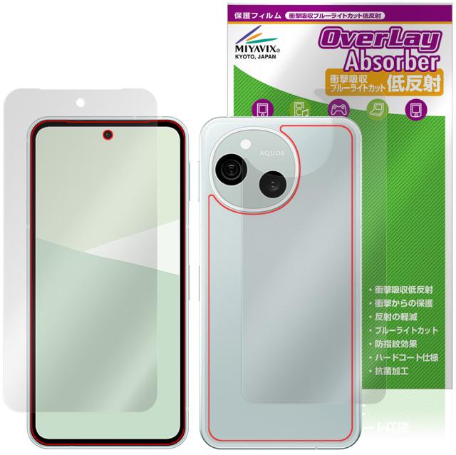 AQUOS sense10 SH-M33 SH-53F SHG15 表面 背面 フィルム OverLay Absorber 低反射 for アクオス センス 衝撃吸収 ブルーライトカット 抗菌