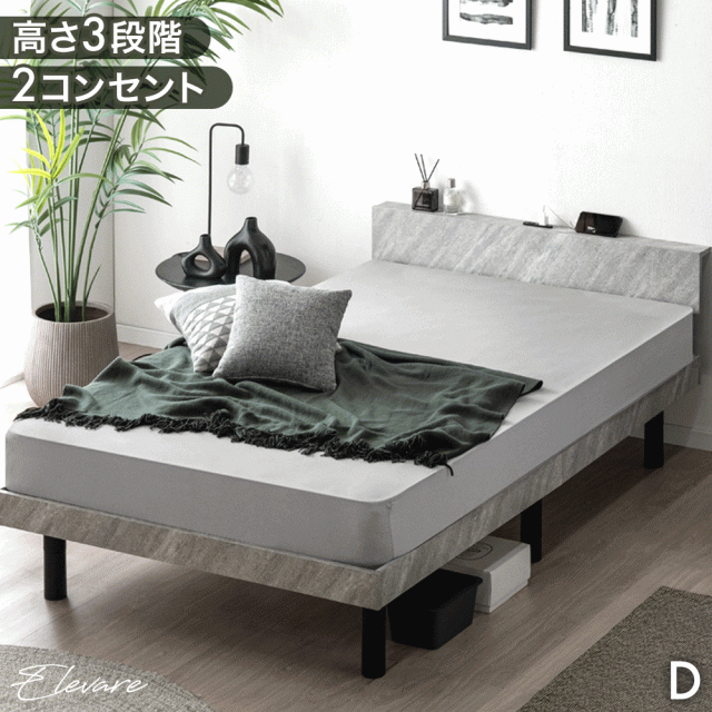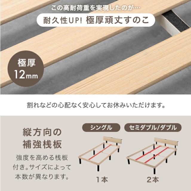 ベッド 2口コンセント付 宮棚 高さ調節 ダブルベッド ベットフレーム フレームのみ すのこ コンセント付 宮棚付き 宮付きベッド 木製 シンプル