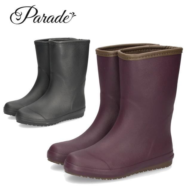 長靴 レディース ミドル丈 レインブーツ 防水 防滑 軽量 吸湿速乾素材使用 雨靴 雪 ブラック ボルドー 柔らか シンプル ガーデニング パレード 52606 Parade