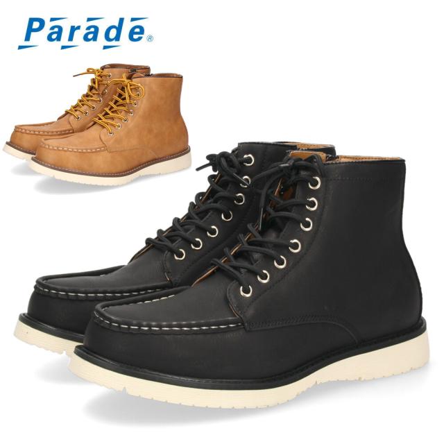 ブーツ メンズ 防水 防滑 黒 ハイカット 紐 レースアップ ブラック ブラウン 合皮 雨 雪 歩きやすい 滑りにくい パレード 4830 Parade