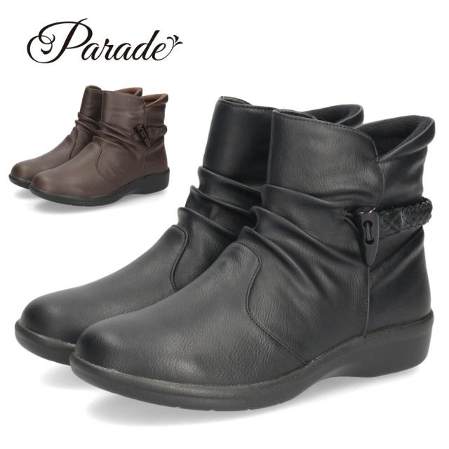 ショートブーツ レディース ブーツ 防水 防寒 幅広 4E ゆったり 黒 ブラック 晴雨兼用 履きやすい 柔らかい ローヒール Parade パレード 52907