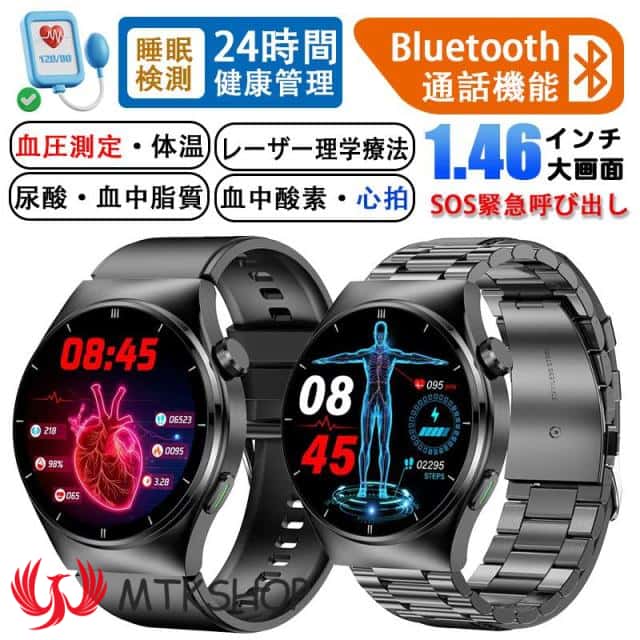 - 血中酸素、通話出来る、24時間、心拍数計測、睡眠検測、AI診断測定、 血中脂質モニター、尿酸値測定、多機能機能など