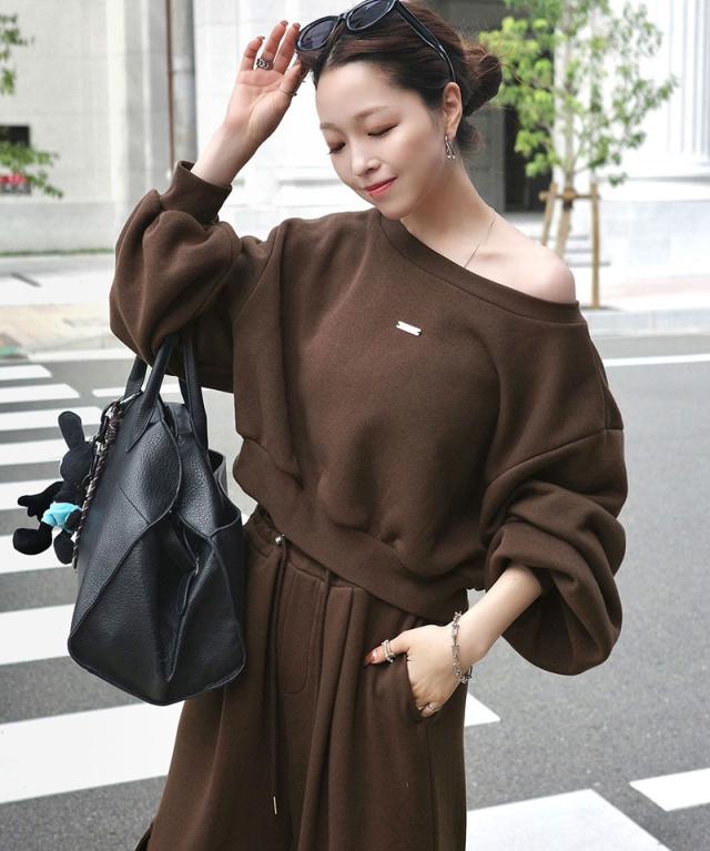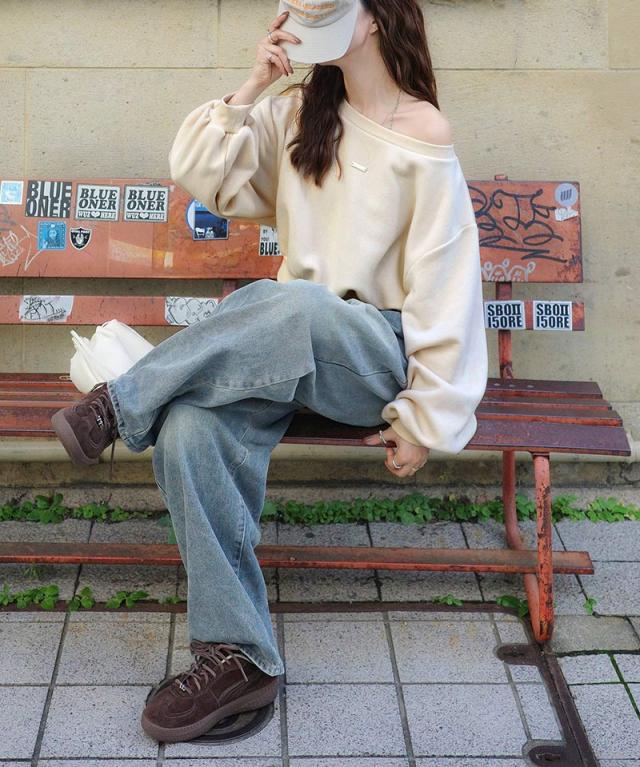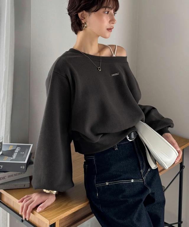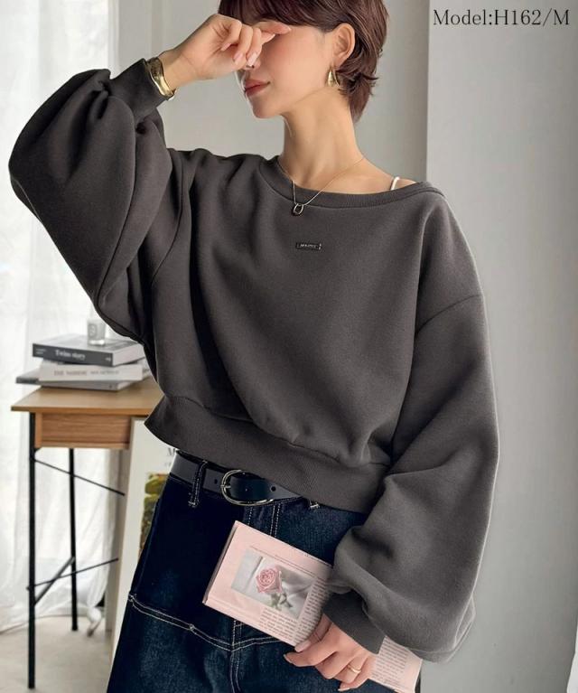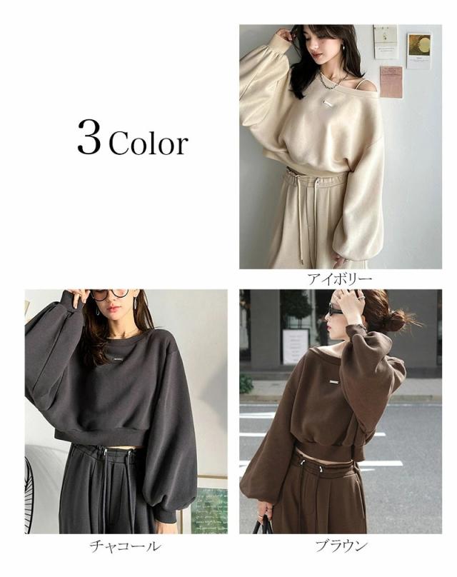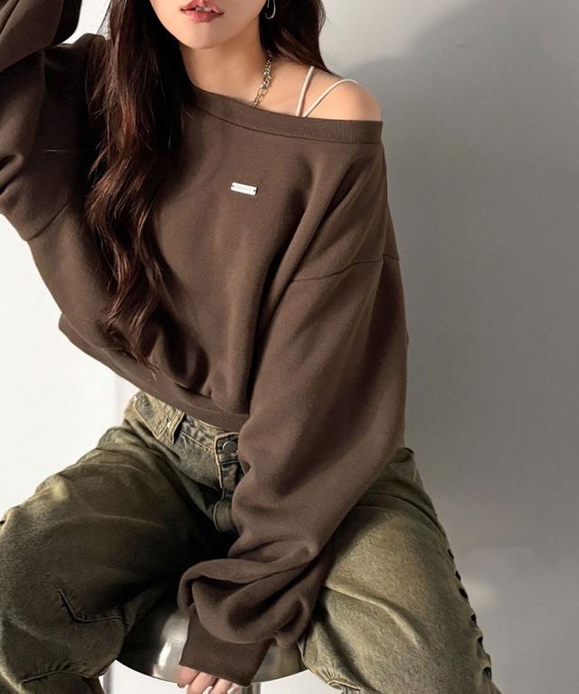 クラシカルエルフ冬新作 トップス スウェット レディース 2WAY クロップド 裏起毛 リラックス クルーネック ワンショルダー シルバープレート ゆったり ストレッチ 暖かい 軽い カジュアル 着心地抜群 大きいサイズ 2025aw ce1010507