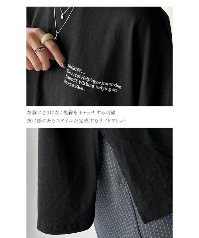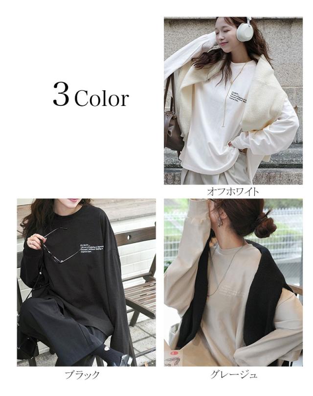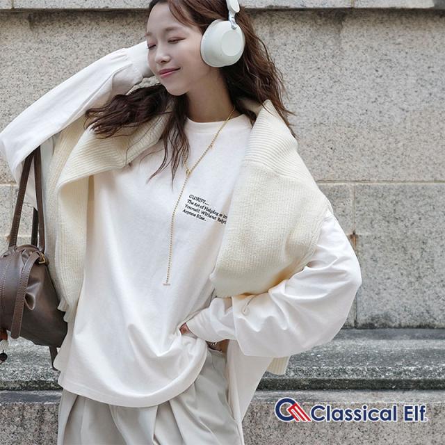 クラシカルエルフ冬新作 トップス カットソー レディース 綿100% 胸刺繍入り ロンT ベーシック ゆるっと感 レイヤード ルーズ 上品 カジュアル ドロップショルダー ざっくり 天竺生地 サイドスリット 大きいサイズ 2025aw ce1010510